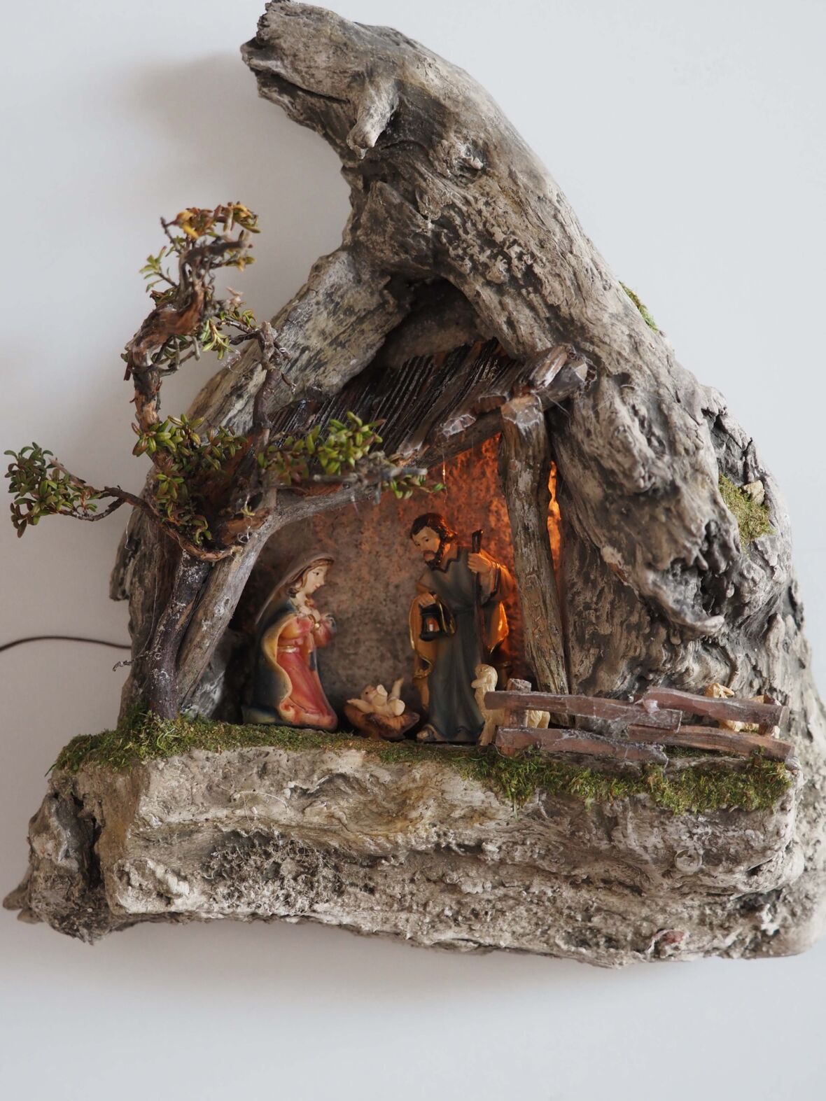 Für seine Krippen verwendet Scherrer ausschließlich Naturmaterialien, die er bei Spaziergängen und Wanderungen sammelt. Alte Holzschindeln, Wurzelstöcke, Lärchenrinde, dürres Geäst, Kleinpflanzen und Moos finden in seinen Kreationen eine neue, kunstvolle Bestimmung. Jedes Stück ist ein Unikat, das die Verbundenheit zur Natur und die kreative Handwerkskunst Scherrers widerspiegelt.