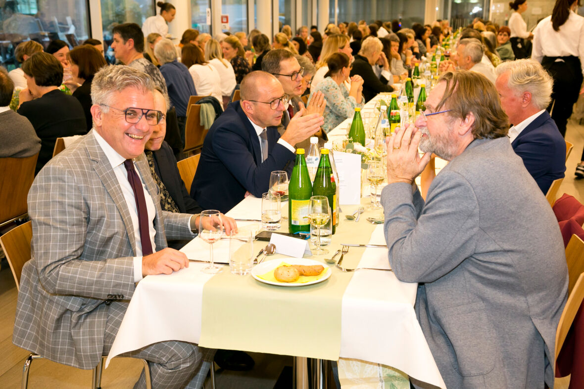 „Unsere zahlreichen Jubilarinnen und Jubilare stehen für Kontinuität, Verlässlichkeit und Menschlichkeit“, sagte Dr. Werner Gsteu, Personalleiter am Landeskrankenhaus Feldkirch, bei seiner Festrede. „Dafür sind wir dankbar. Doch nicht nur wir, sondern auch die Patientinnen und Patienten, ihre Angehörigen und nicht zuletzt die Kolleginnen und Kollegen, die von der Erfahrung und Resilienz der langjährigen Mitarbeitenden profitieren. Diese Dankbarkeit verbindet uns alle im Haus.“ Auch Landesrätin Martina Rüscher, MBA, MSc bedankte sich bei den anwesenden Jubilar:innen jeweils persönlich und bemerkte im Rahmen ihrer Rede: „Die Jubilarinnen und Jubilare des LKH Feldkirch zeigen eindrucksvoll, wie wichtig Erfahrung, Kompetenz und Kontinuität im Gesundheitswesen sind. Sie sichern die Qualität, vermitteln Stabilität und schaffen eine Kultur des Miteinanders. Besonders beeindruckt mich, mit welcher Hingabe und Beständigkeit Sie Ihren Beruf über Jahrzehnte ausüben – das verdient großen Respekt.“ Dir. Dr. Gerald Fleisch, Geschäftsführer der Vorarlberger Krankenhaus-Betriebsgesellschaft, ergänzte: „Langjährige Mitarbeiterinnen und Mitarbeiter sind das Herzstück unserer Landeskrankenhäuser. Sie prägen die Kultur unserer Häuser und machen es möglich, dass moderne Spitzenmedizin und gelebte Menschlichkeit Hand-in-Hand gehen.“